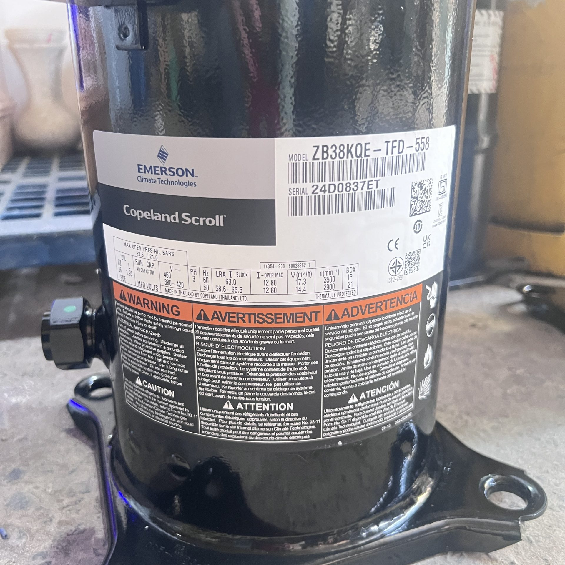 Máy nén lạnh Copeland 5HP ZB38KQE-TFD-558